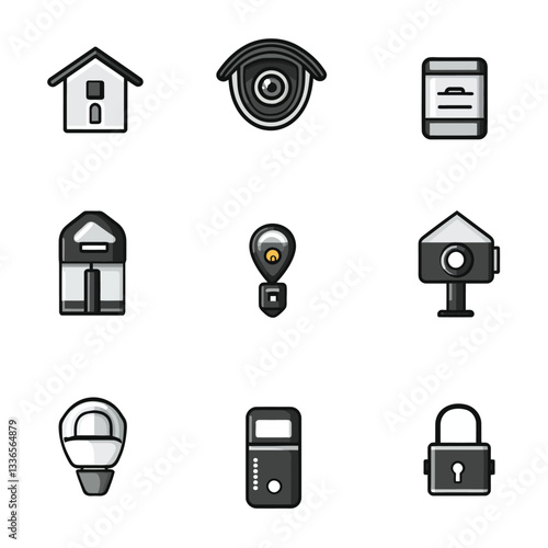 Home Security System Icons, Surveillance Camera, Doorbell, Padlock, Property