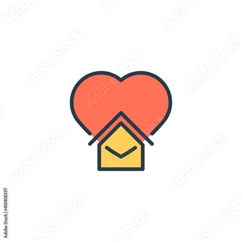 Home with heart icon, color, line, outline vector sign, linear style pictogram isolated on white. Symbol, logo illustration