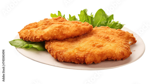 Homemade breaded chicken schnitzel isolated on transparent a white background
