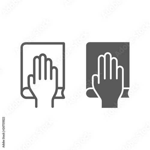 Honestly line and glyph icon, truth and trust, palm on book sign, vector graphics, a linear pattern on a white background.
