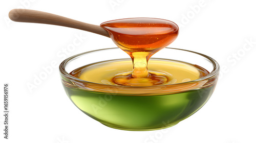Honey dripping into bowl 3d rendered, isolated on transparent background