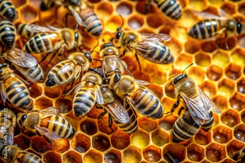 Honeybee Hive Panoramic: Close-Up Honeycomb & Busy Bees