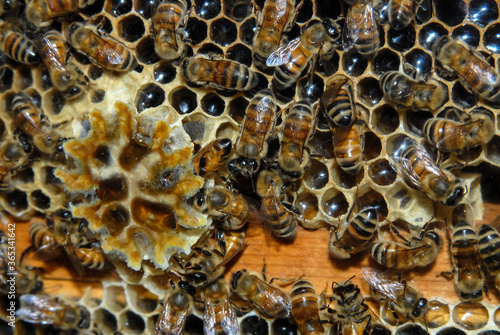 Honeybees on their honeycomb