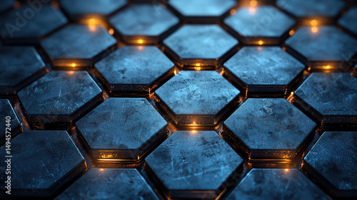 Honeycomb of Technology: Intricate, geometric hexagonal cells, bathed in a futuristic, cool blue with a subtle, warm, and bright glow, symbolizing connection and innovation.