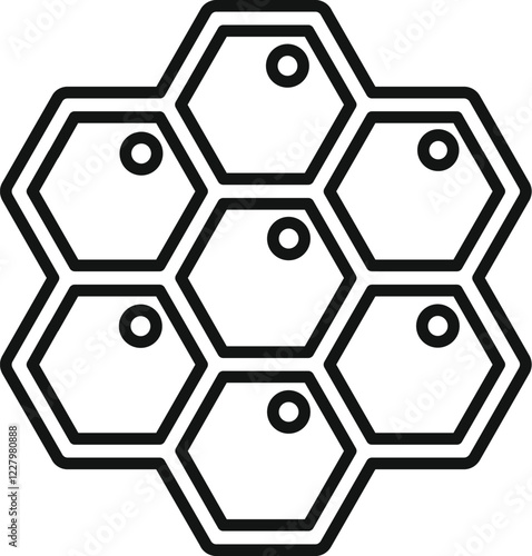 Honeycomb structure made of repeating hexagons with circles inside, symbolizing bee hives, natural patterns, or artificial structures