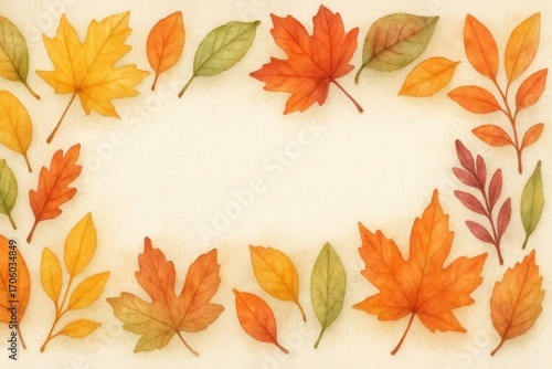 Horizontal Banner with Watercolor Fall Foliage — Soft Shadows, Empty Center