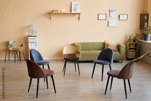 Horizontal image of empty room with armchairs for patients for psychotherapy