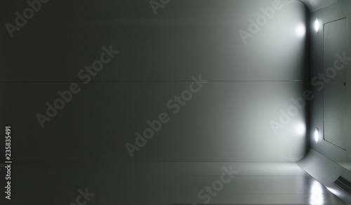 Horizontal shot of lift cabin which like on a space gateway.