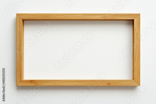 Horizontal Wooden Frame mock-up on White Wall. Thin and Simple Wooden Frame in 3D Illustration