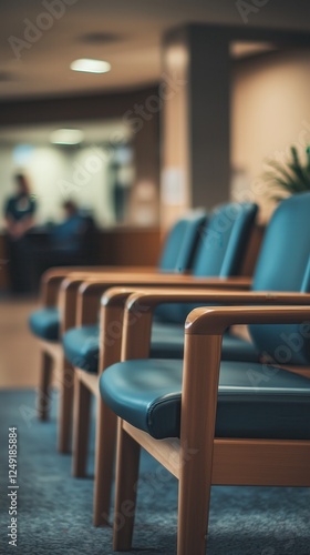 Hospital waiting room offers calm atmosphere with blurred activity in background
