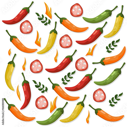 Hot Chili peppers pattern detailed colorful vector illustration template background