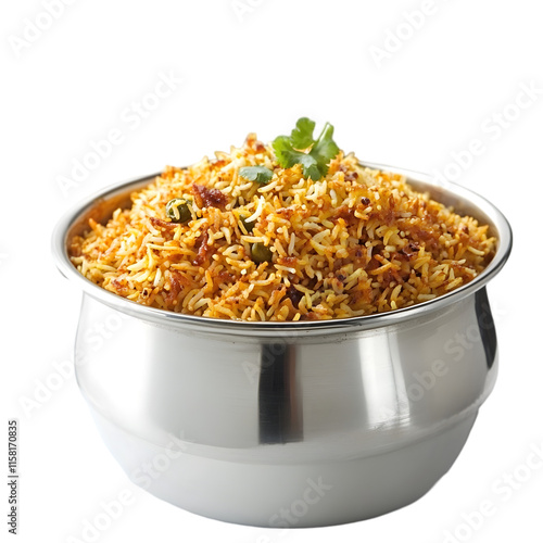 Hot Spicy Chicken Biryani Showing Leg Piece Isolated on wight background