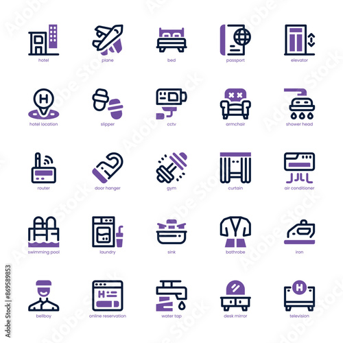 Hotel Service icon pack for your website, mobile, presentation, and logo design. Hotel Service icon dual tone design. Vector graphics illustration and editable stroke.