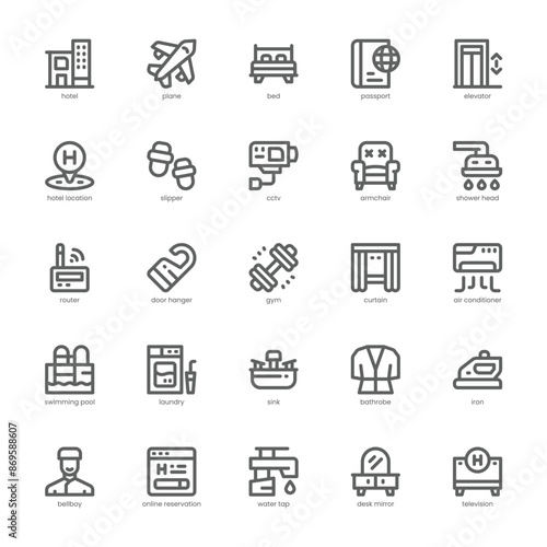Hotel Service icon pack for your website, mobile, presentation, and logo design. Hotel Service icon outline design. Vector graphics illustration and editable stroke.
