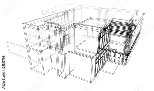 house building sketch architecture 3d illustration