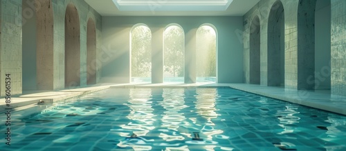 House interiors, private swimming pool. with copy space image. Place for adding text or design