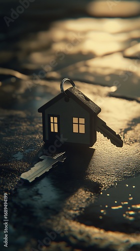 House Key On Wet Surface With Dramatic Lighting home keys photo