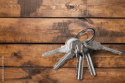 House metal keys on wooden desk