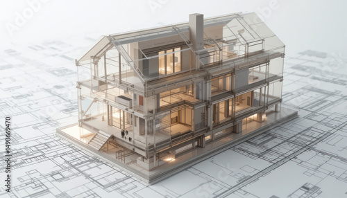 House model on blueprints, design planning, architecture concept