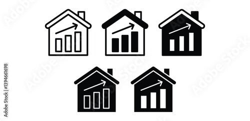 House Value Increase Icons Black and White Vector Graphic Design Set