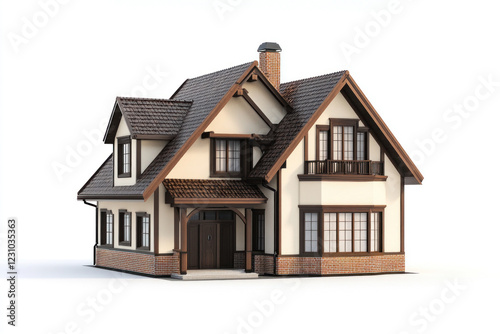 House with brown roof and trim, surrounded by lush green trees in a peaceful countryside setting.