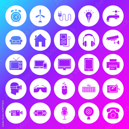 Household Appliance Solid Circle Icons. Vector Illustration of Glyphs over Blurred Background.