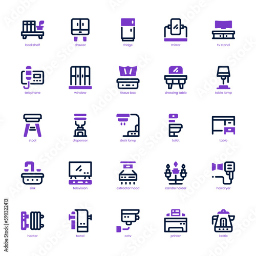 Household Equipment Icon pack for your website design, logo, app, and user interface. Household Equipment Icon mixed line and solid design. Vector graphics illustration and editable stroke.