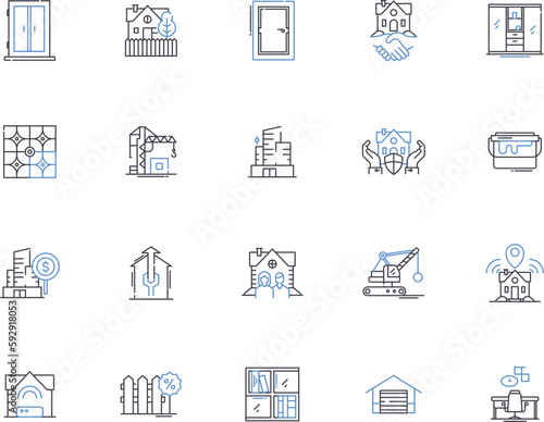 Household outline icons collection. Home, Furnishing, Appliances, Cleaning, Decor, Storage, Electronics vector and illustration concept set. Plumbing, Equipment, Lighting linear signs
