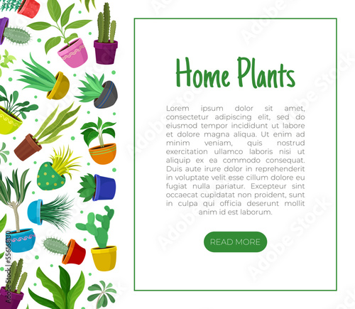 Houseplant Design with Plants Growing in Ceramic Pots Vector Template