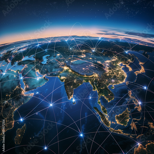 How Interconnected Global Trade Networks Promote Cross-Cultural Exchange and Digital Communication. Concept Global Trade Networks, Cross-Cultural Exchange, Digital Communication