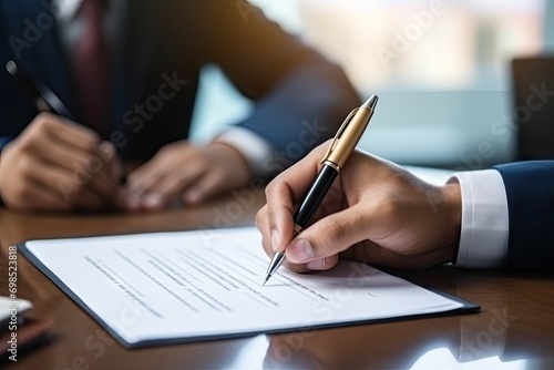 HR Manager Assisting a New Employee with Job Application Form, While a Legal Expert Guides a Client Through a Contract for Signature generative ai
