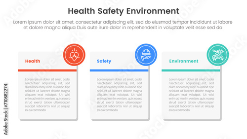 hse framework infographic 3 point stage template with big round square box for slide presentation