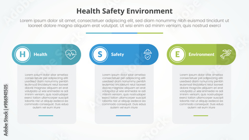 HSE infographic concept for slide presentation with table box and round header with 3 point list with flat style