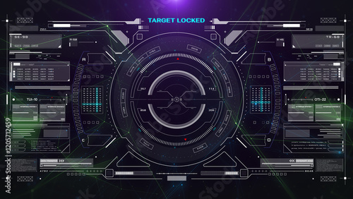 HUD aerial view explorer flying and tracking security system technology illustration. Drone head up futuristic display concept.