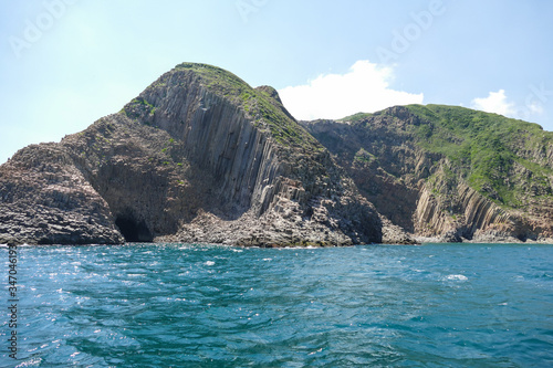 Huge hexagonal columnar joints of volcanic rock at Hong Kong Global Geopark, China