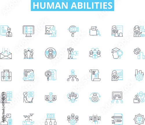 Human abilities linear icons set. Resilience, Creativity, Intelligence, Empathy, Adaptability, Perseverance, Ambition line vector and concept signs. Ingenuity,Intuition,Courage outline illustrations