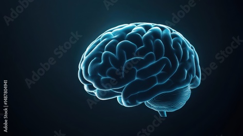 Human Brain 3D Model in Neon Glow on Dark Background for Abstract Concepts