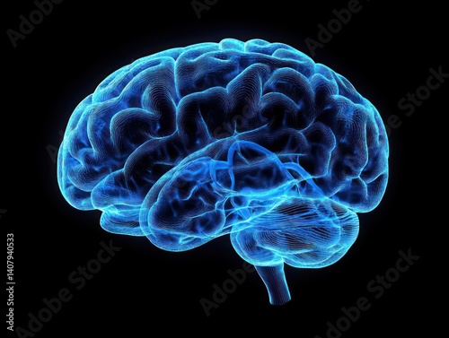 Human Brain MRI Anatomical Illustration in Hyper-Realistic Style with Bioluminescent Glow