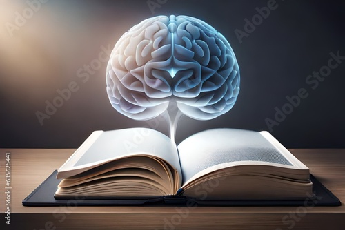 human brain with book, Virtual brain over open book. Creative thinking idea to solve problem from learning knowledge and innovation concept. The concept of future technologies.