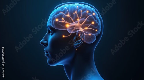 Human Brain With Illuminated Neural Connections Against a Dark Background