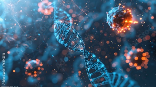 Human disease and biotechnology concept with virus infected DNA molecule. 3D rendering