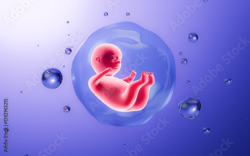 Human embryo model, 3d rendering.