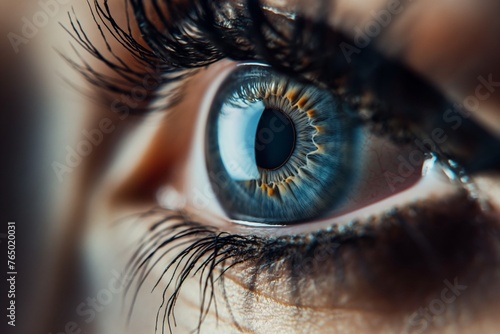 human eye with blue iris, long eyelashes, Blue woman eye macro, Macro image of human eye