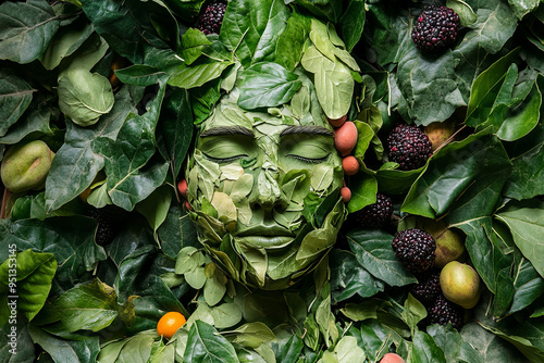 Human figure made of leaves and fruit, symbolizing a connection with nature