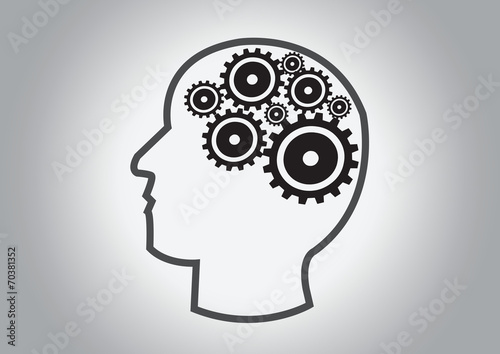 Human head and gears brain idea concept
