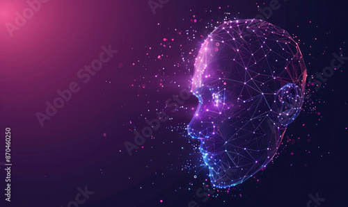 Human head created in low poly style. Man face polygon light. Emotional Intelligence allegory AI. Facial Recognition System concept. biometric scanning, 3D scanning