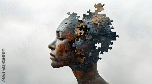 Human head from puzzles, for World Mental Health Day, created using Generative AI technology.