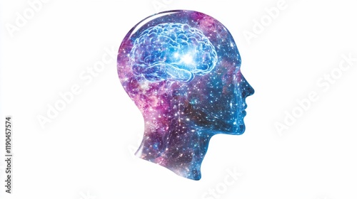 Human head silhouette with a galaxy inside, representing the vastness of the mind and consciousness.