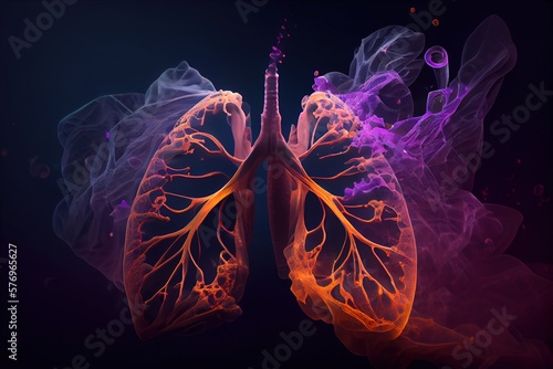 Human lungs filled with smoke. Respiratory system, lungs of smoking people. Lungs with steam. Generative AI