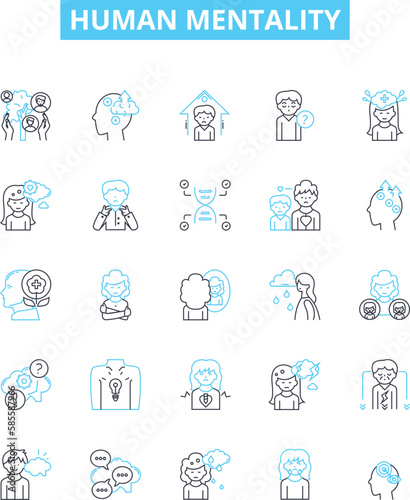Human mentality vector line icons set. Mindset, Attitude, Perception, Cognition, Reasoning, Thought, Psychology illustration outline concept symbols and signs